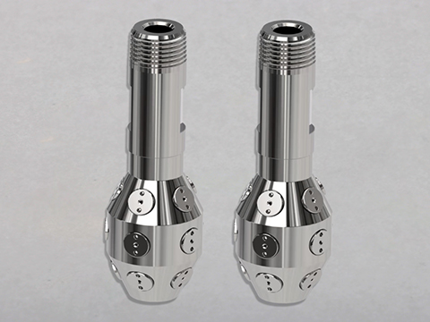 2、該噴嘴有15或21個全錐形噴嘴可供選擇,可以在10巴的壓力下完全覆蓋小容器的內表面